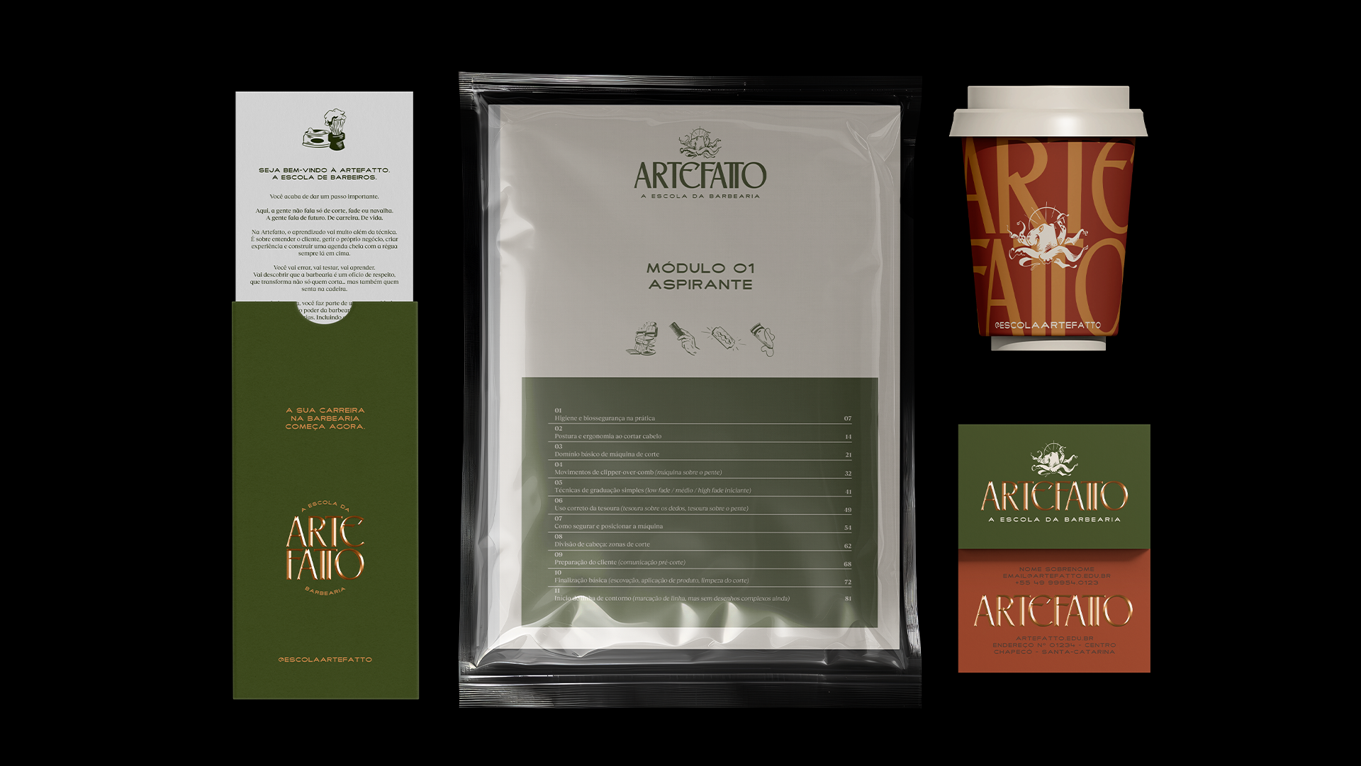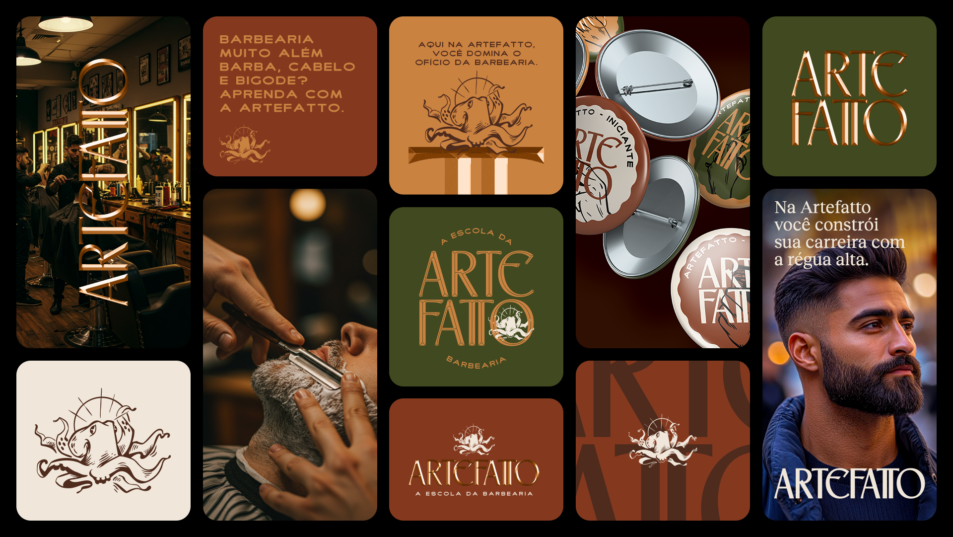 The result is a solid brand that clearly communicates its positioning as the school for those who want more from barbering. An identity that legitimizes the business expansion and establishes Artefatto as a reference in training complete professionals, prepared both technically and strategically to thrive in their careers.