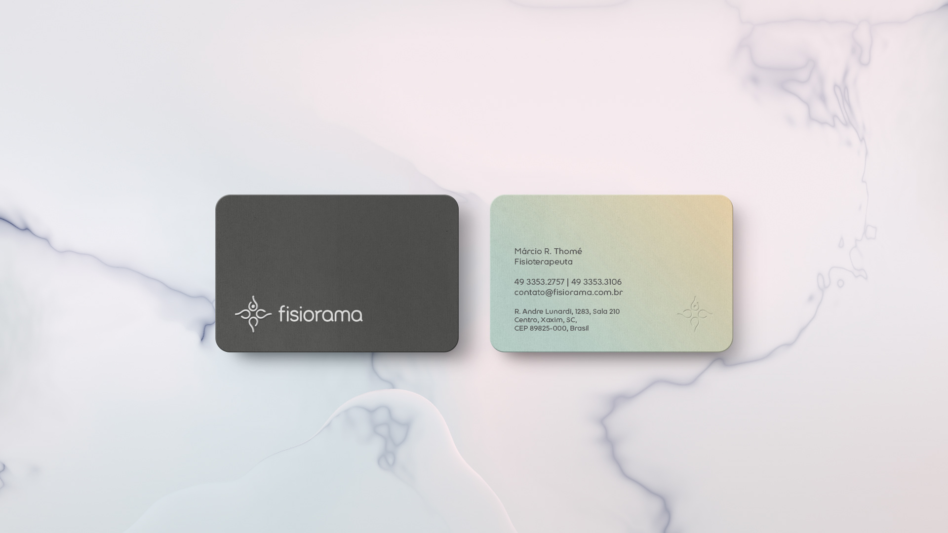 Fisiorama is a clinical physical therapy , Pilates and has its own gym for patients who do there therapy. The initial idea was to work with a new name and reposition the symbol, to convey lightness , reliability and that the mark had a representation that physiotherapy is not a bad thing , but a treatment that is essential for the body.