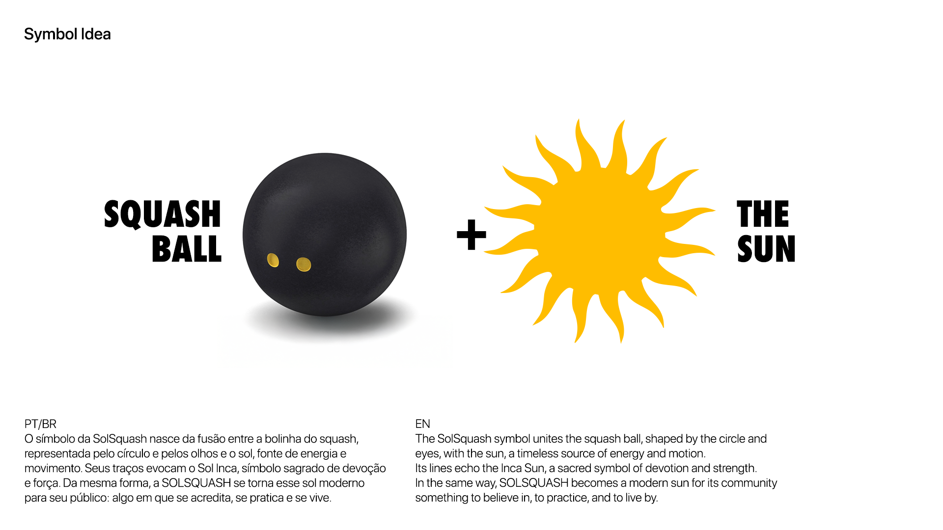 Do latim sol, que significa “sol”, e squash, esporte nascido do movimento e da precisão. A SOLSQUASH é mais do que um jogo, é energia, ritmo e devoção. Representa a força do movimento, o calor do sol e o equilíbrio entre o controle e o caos. Aqui, cada partida é um ritual de luz e suor, um pulso que une pessoas através do esforço e da paixão. Jogar SOLSQUASH é redescobrir o próprio fogo, encontrar, em cada golpe, o reflexo do sol que move a todos nós.