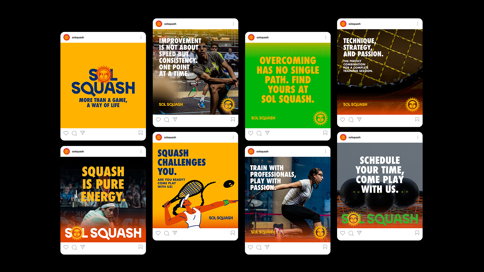 From the Latin sol, meaning “sun,” and squash, a sport born from motion and precision. SOLSQUASH is more than a game, t’s energy, rhythm, and devotion. It represents the power of movement, the warmth of the sun, and the balance between control and chaos. Here, every match is a ritual of light and sweat, a pulse that connects people through effort and passion. To play SOLSQUASH is to rediscover your own fire, to find, in every hit, a reflection of the sun that moves us all.